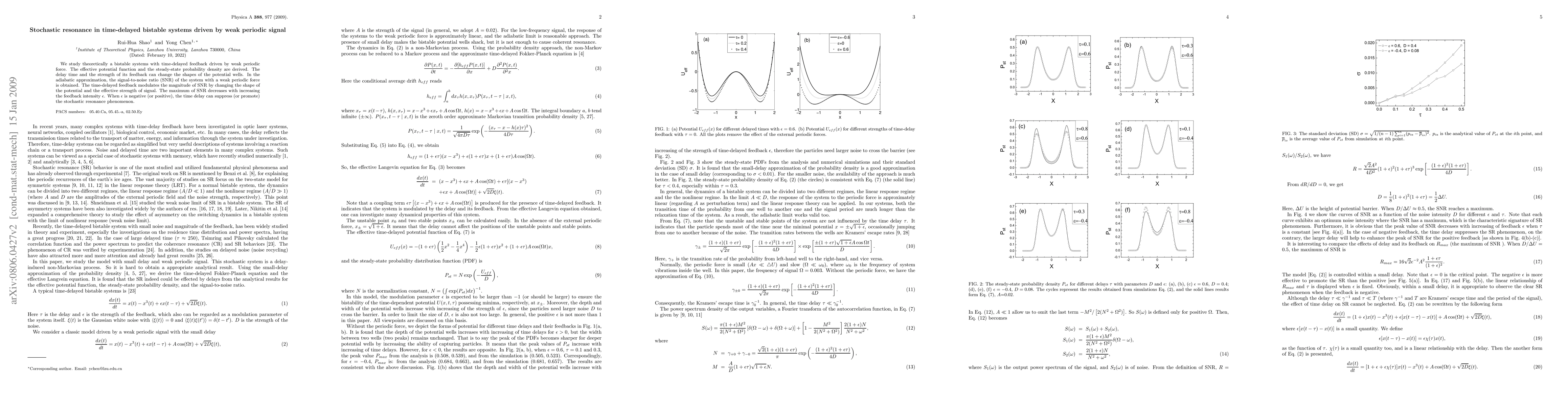This paper theoretically investigates bistable systems with time-delayed feedback driven by weak periodic signals, deriving the effective potential and steady-state probability density. It finds that time-delayed feedback modulates the signal-to-noise ratio, with the maximum SNR decreasing as feedback intensity increases, and the time delay can either suppress or promote stochastic resonance depending on the feedback sign.