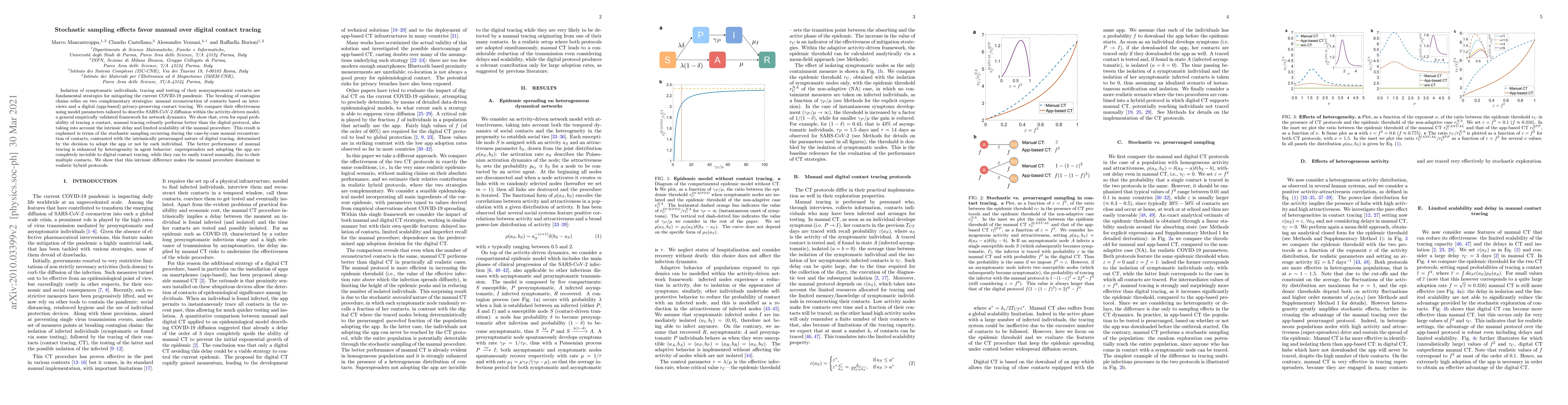 Isolation of symptomatic individuals, tracing and testing of their nonsymptomatic contacts are fundamental strategies for mitigating the current COVID-19 pandemic. The breaking of contagion chains relies on two complementary strategies: manual reconstruction of contacts based on interviews and a digital (app-based) privacy-preserving contact tracing. We compare their effectiveness using model parameters tailored to describe SARS-CoV-2 diffusion within the activity-driven model, a general empirically validated framework for network dynamics. We show that, even for equal probability of tracing a contact, manual tracing robustly performs better than the digital protocol, also taking into account the intrinsic delay and limited scalability of the manual procedure. This result is explained in terms of the stochastic sampling occurring during the case-by-case manual reconstruction of contacts, contrasted with the intrinsically prearranged nature of digital tracing, determined by the decision to adopt the app or not by each individual. The better performance of manual tracing is enhanced by heterogeneity in agent behavior: superspreaders not adopting the app are completely invisible to digital contact tracing, while they can be easily traced manually, due to their multiple contacts. We show that this intrinsic difference makes the manual procedure dominant in realistic hybrid protocols.