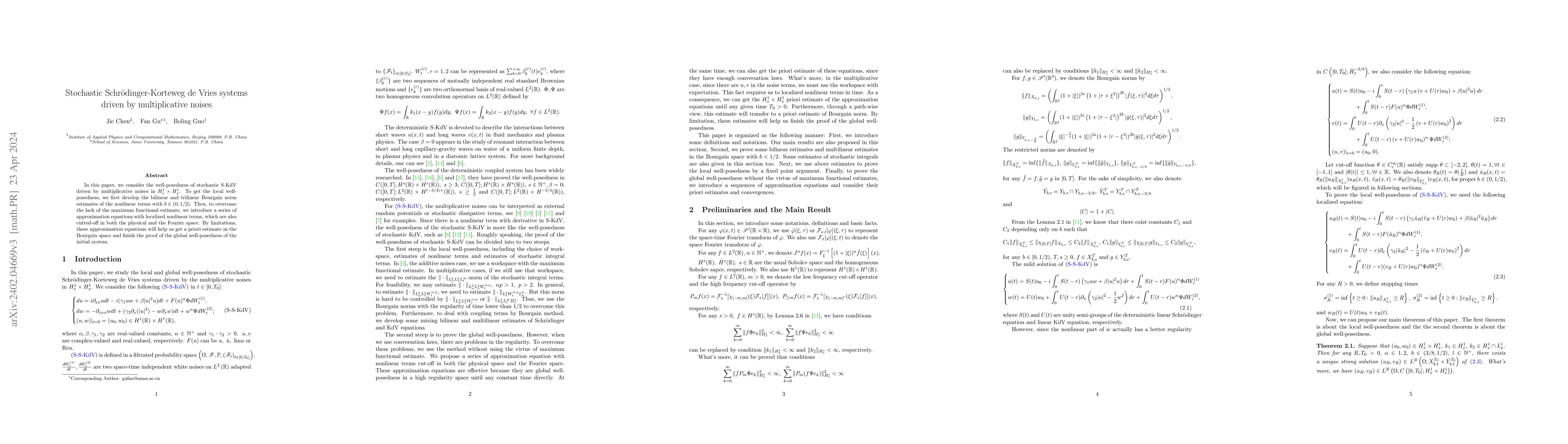 This paper investigates the well-posedness of stochastic S-KdV equations driven by multiplicative noise, proving local well-posedness through bilinear and trilinear Bourgain norm estimates. To achieve global well-posedness, it introduces localized approximation equations and obtains a priori estimates in the Bourgain space.