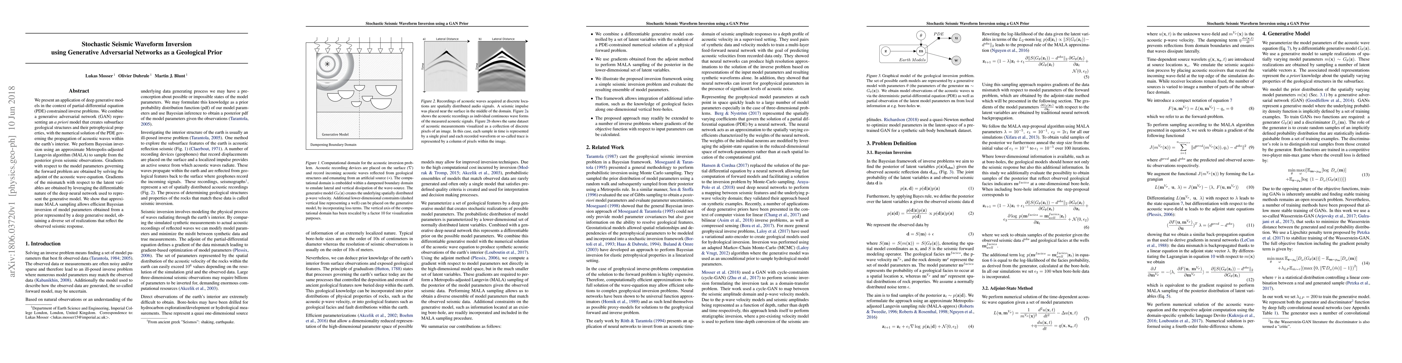 This paper applies generative adversarial networks (GANs) as geological priors to perform stochastic seismic waveform inversion, combining them with PDE-constrained inversion and Bayesian sampling techniques to efficiently infer diverse subsurface models from seismic observations. The approach leverages the differentiable nature of the GAN to obtain gradients for inversion, achieving accurate and varied geological realizations.