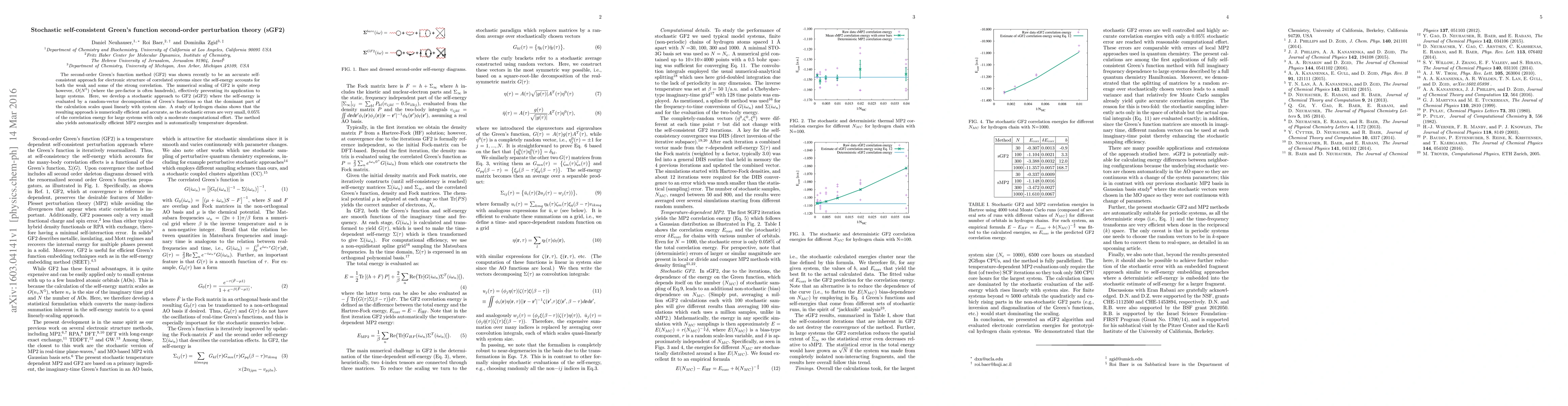 The paper introduces a stochastic approach to second-order Green's function perturbation theory (sGF2) to address the steep computational scaling of GF2. The method employs random-vector decomposition to achieve quasi-linear scaling, demonstrating efficiency and accuracy in hydrogen chains with minimal stochastic errors.