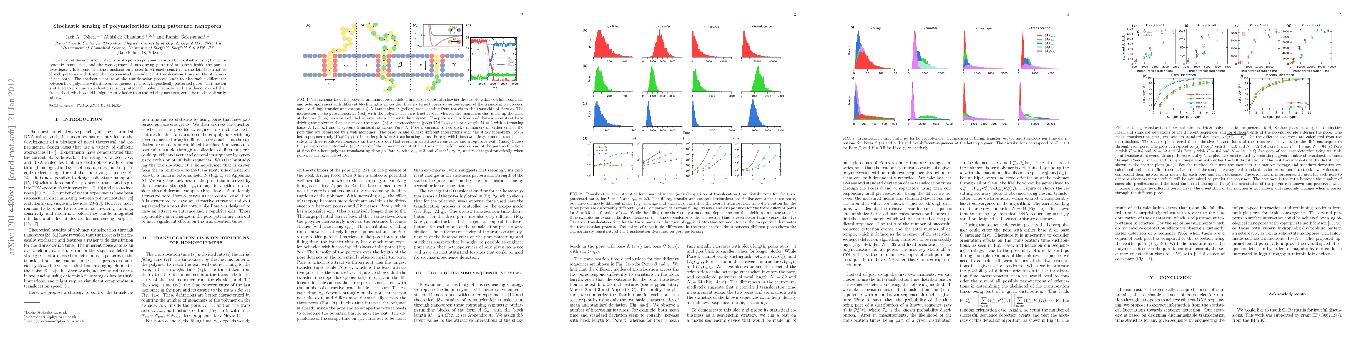 This paper investigates how the microscopic structure and patterned stickiness of nanopores affect the translocation of polynucleotides, revealing a stochastic sensing protocol that leverages these effects for faster and more robust detection of polynucleotide sequences. The study demonstrates that the translocation process is highly sensitive to pore patterning, enabling distinct sensing capabilities for different polymer sequences.