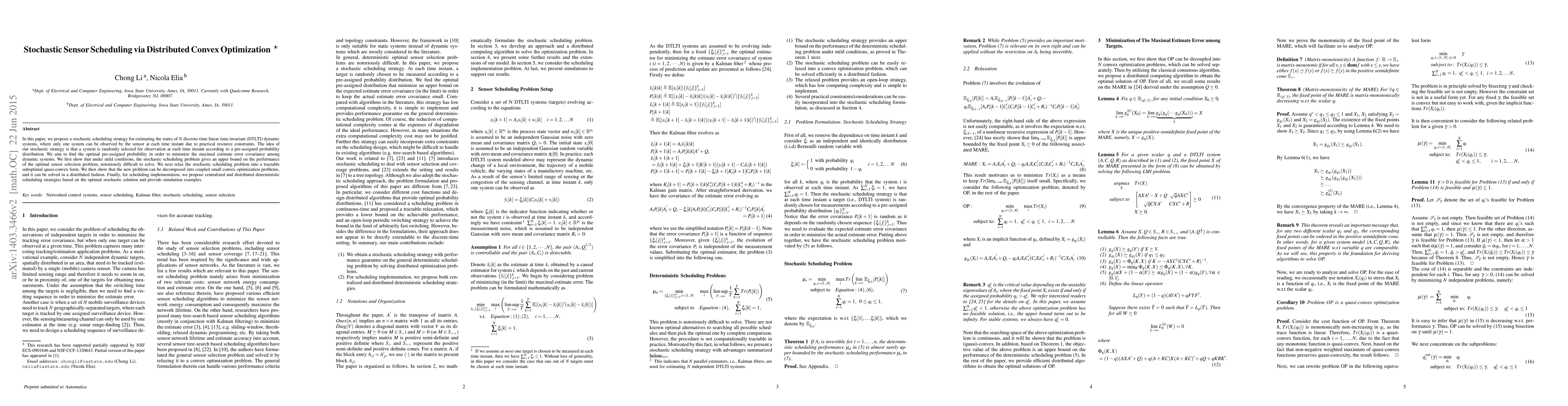 This paper proposes a stochastic scheduling strategy for estimating states of multiple DTLTI systems using a single sensor, aiming to minimize maximal estimate error. It transforms the stochastic scheduling problem into a distributed convex optimization, providing both centralized and distributed scheduling implementations.