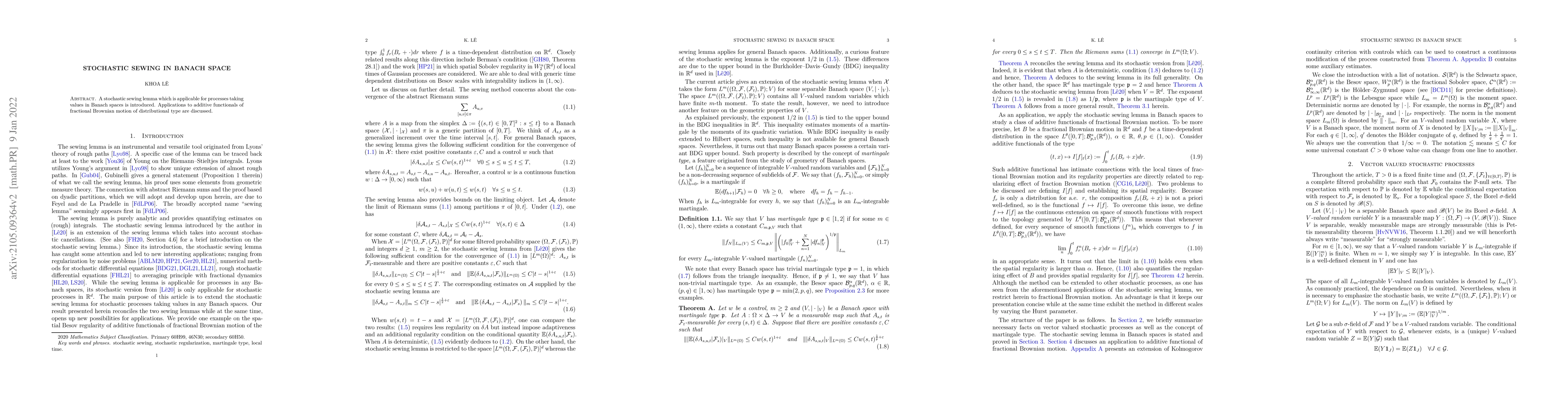 A new stochastic sewing lemma is introduced for processes in Banach spaces, with applications to fractional Brownian motion, allowing for a more comprehensive understanding of additive functionals.