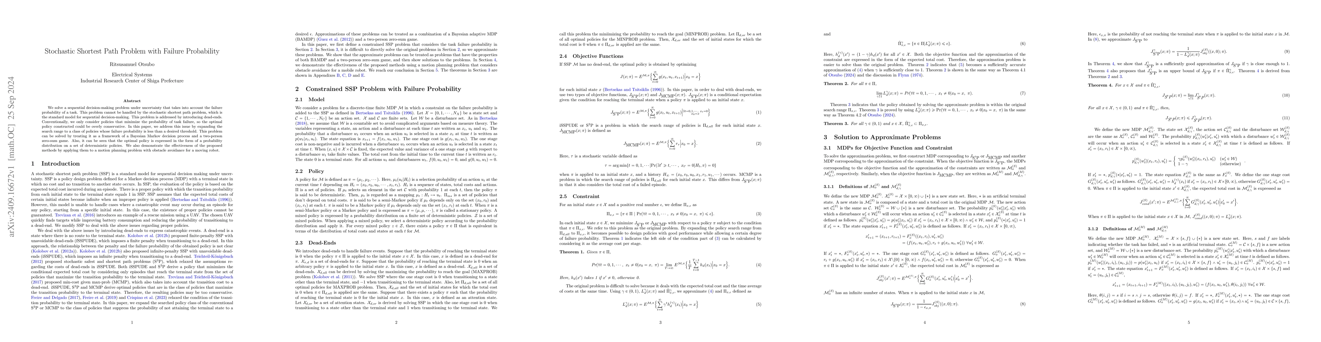 This paper introduces a novel approach to the stochastic shortest path problem by incorporating task failure probabilities, expanding beyond traditional conservative policies. It frames the problem as a Bayesian Markov decision process and a two-person zero-sum game, and demonstrates its effectiveness in a motion planning scenario for obstacle-avoiding robots.