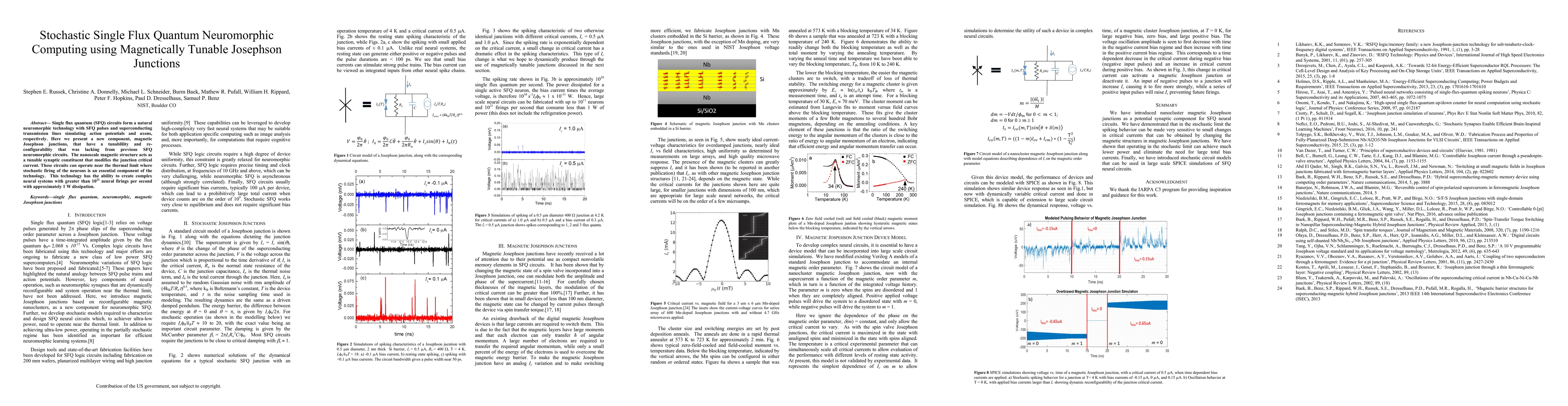 This paper introduces magnetically tunable Josephson junctions as a new component in stochastic single flux quantum (SFQ) neuromorphic circuits, enhancing their tunability and re-configurability. These nanoscale magnetic structures enable tunable synaptic behavior, enabling the creation of complex neural systems capable of over 10^21 neural firings per second with minimal dissipation.