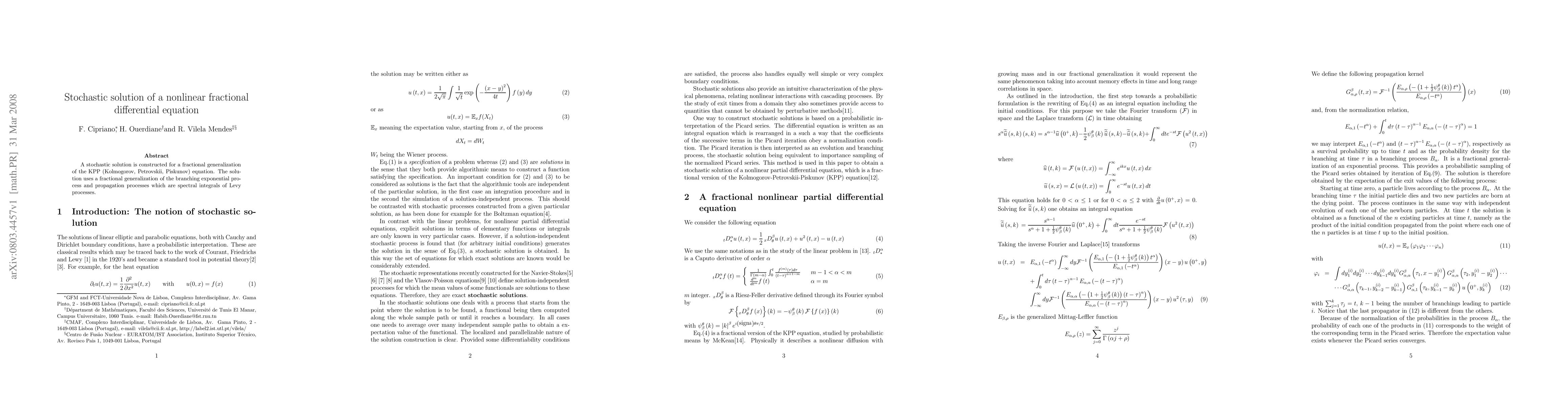 Summary: This paper constructs a stochastic solution for a fractional version of the KPP equation, employing a fractional branching exponential process and spectral integrals of Lévy processes to model propagation processes.