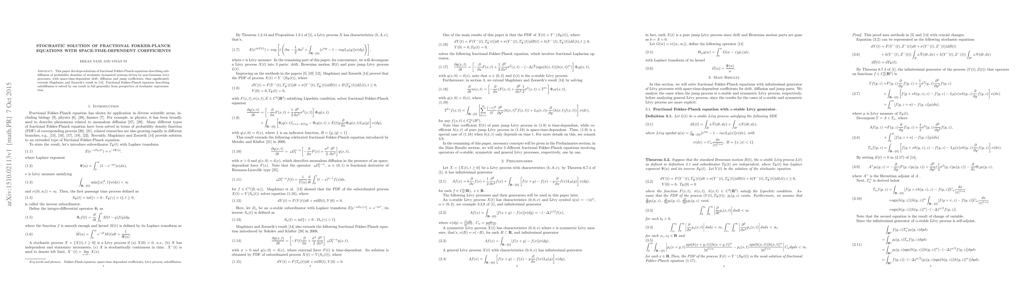 This paper presents a comprehensive solution for fractional Fokker-Planck equations with space-time-dependent coefficients, extending the work of Magdziarz and Zorawik to cover non-Gaussian Lévy processes and full generality in stochastic representation.