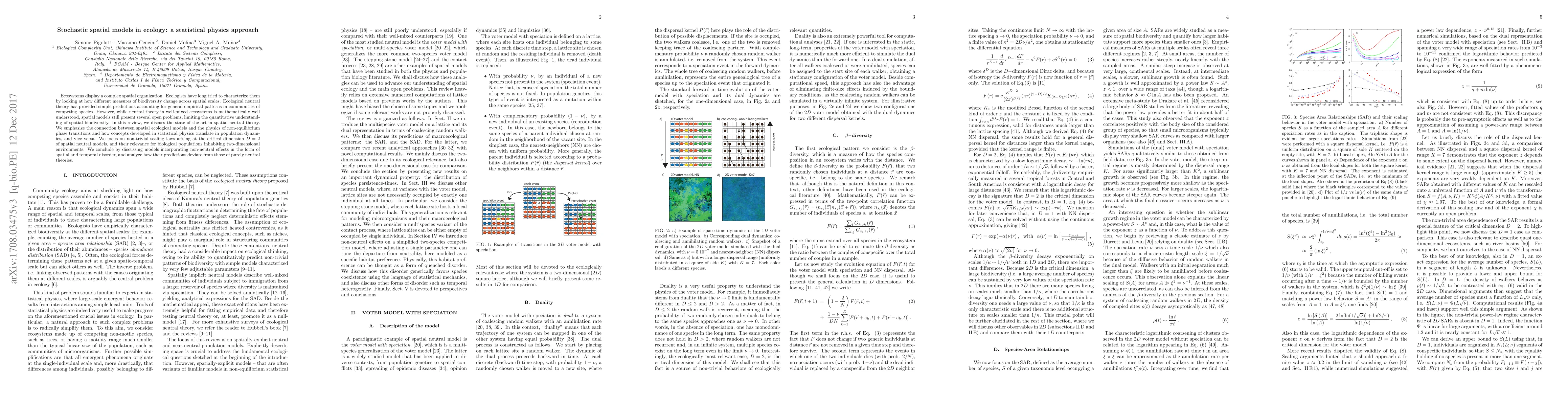 This paper reviews the application of statistical physics to spatial neutral theory in ecology, highlighting the connection between spatial biodiversity patterns and non-equilibrium phase transitions. It focuses on scaling laws at the critical dimension D=2 and discusses how non-neutral effects like spatial and temporal disorder alter predictions.