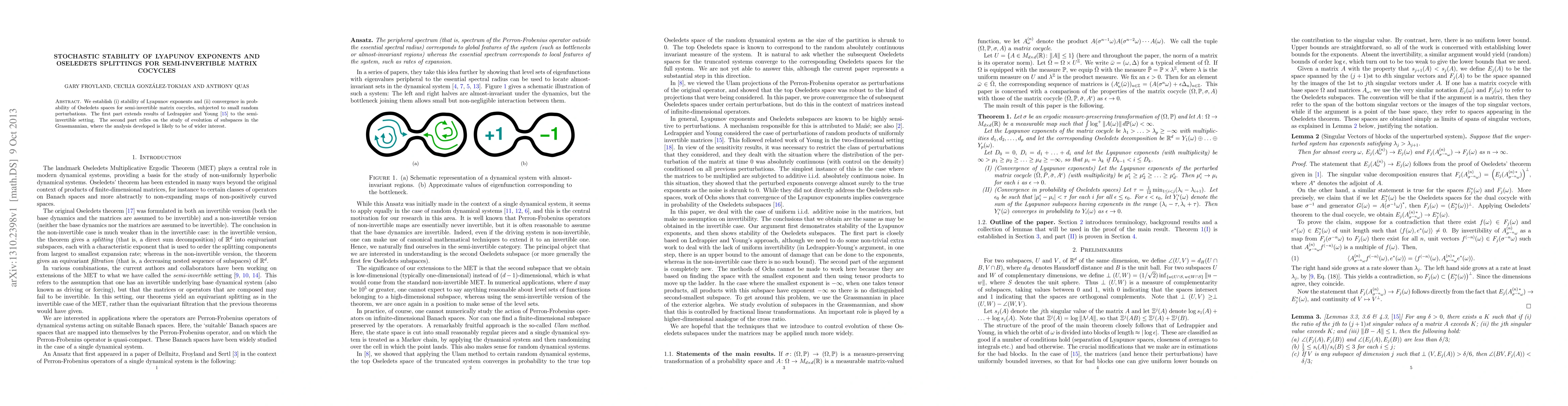 We establish (i) stability of Lyapunov exponents and (ii) convergence in probability of Oseledets spaces for semi-invertible matrix cocycles, subjected to small random perturbations. The first part extends results of Ledrappier and Young to the semi-invertible setting. The second part relies on the study of evolution of subspaces in the Grassmannian.