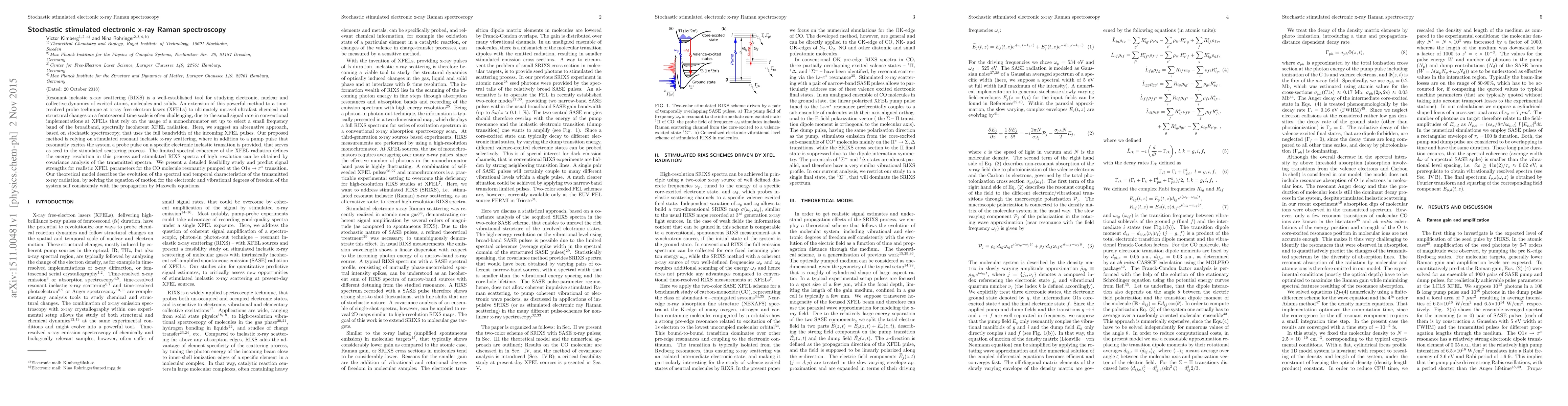 Resonant inelastic x-ray scattering (RIXS) is a well-established tool for studying electronic, nuclear and collective dynamics of excited atoms, molecules and solids. An extension of this powerful method to a time-resolved probe technique at x-ray free electron lasers (XFELs) to ultimately unravel ultrafast chemical and structural changes on a femtosecond time scale is often challenging, due to the small signal rate in conventional implementations at XFELs that rely on the usage of a monochromator set up to select a small frequency band of the broadband, spectrally incoherent XFEL radiation. Here, we suggest an alternative approach, based on stochastic spectroscopy, that uses the full bandwidth of the incoming XFEL pulses. Our proposed method is relying on stimulated resonant inelastic x-ray scattering, where in addition to a pump pulse that resonantly excites the system a probe pulse on a specific electronic inelastic transition is provided, that serves as seed in the stimulated scattering process. The limited spectral coherence of the XFEL radiation defines the energy resolution in this process and stimulated RIXS spectra of high resolution can be obtained by covariance analysis of the transmitted spectra. We present a detailed feasibility study and predict signal strengths for realistic XFEL parameters for the CO molecule resonantly pumped at the O1s-{\pi}* transition. Our theoretical model describes the evolution of the spectral and temporal characteristics of the transmitted x-ray radiation, by solving the equation of motion for the electronic and vibrational degrees of freedom of the system self consistently with the propagation by Maxwell's equations.
