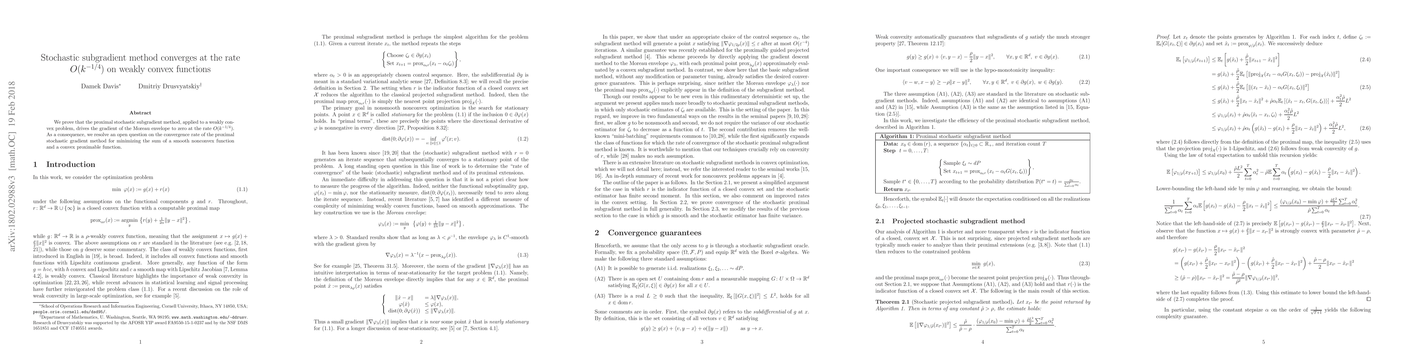 This paper demonstrates that the proximal stochastic subgradient method converges at a rate of $O(k^{-1/4})$ for weakly convex functions, resolving an open question about the convergence rate of the proximal stochastic gradient method for minimizing a smooth nonconvex function combined with a convex proximable function.