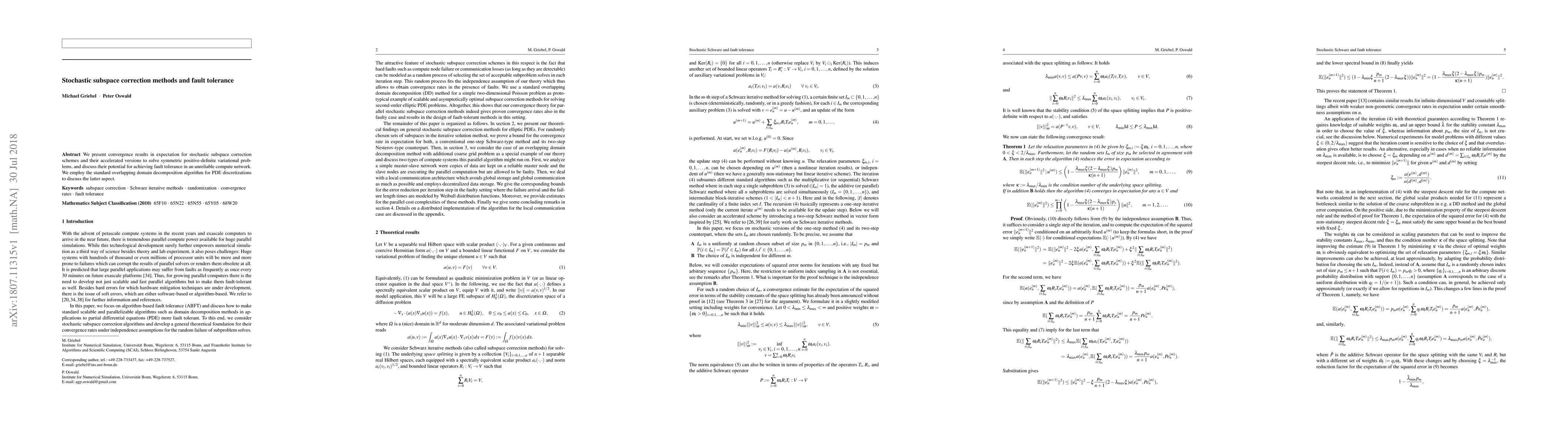 Researchers have shown that stochastic subspace correction schemes can solve complex mathematical problems with high accuracy in an unreliable computer network. This could lead to improved fault tolerance in applications such as weather forecasting or fluid dynamics simulations.