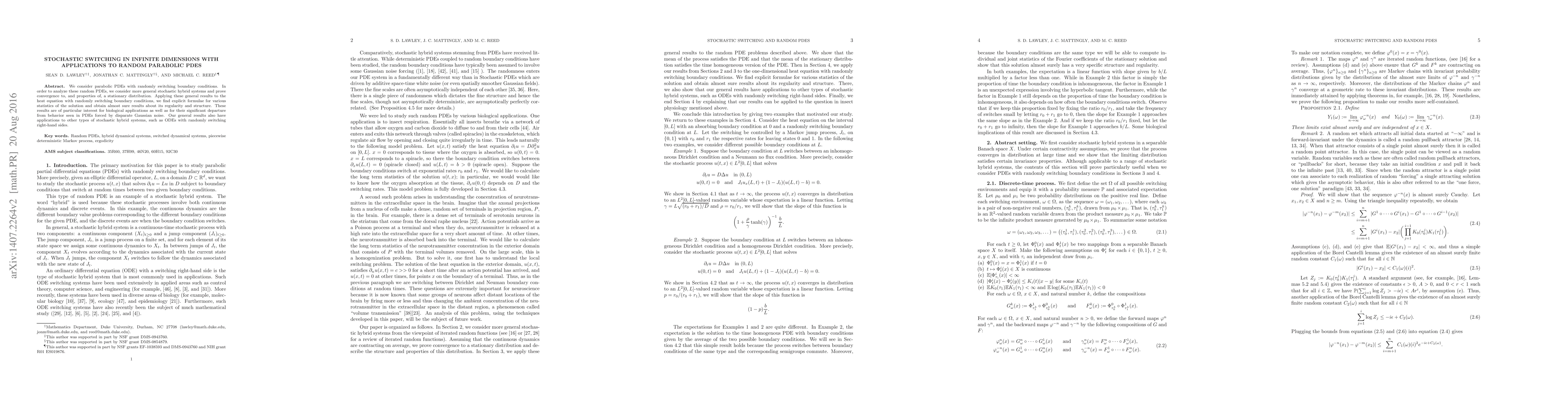 This paper studies parabolic PDEs with randomly switching boundary conditions, proving convergence to a stationary distribution for general stochastic hybrid systems. It derives explicit formulae for solution statistics and almost sure results on regularity, with implications for biological applications and beyond.