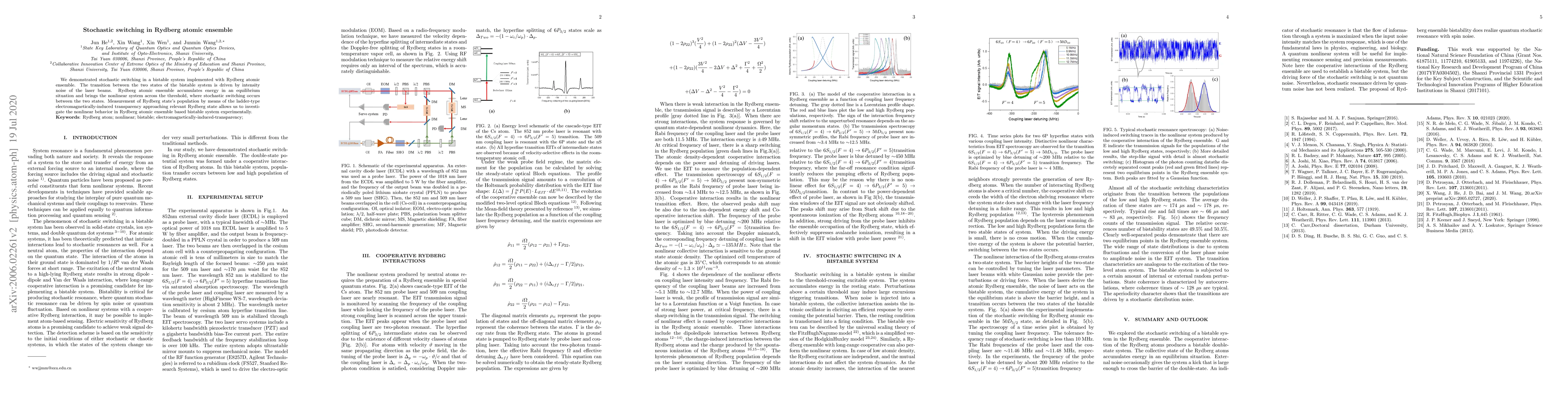 Researchers demonstrated stochastic switching in a Rydberg atomic ensemble driven by laser intensity noise, revealing nonlinear behavior in the system.