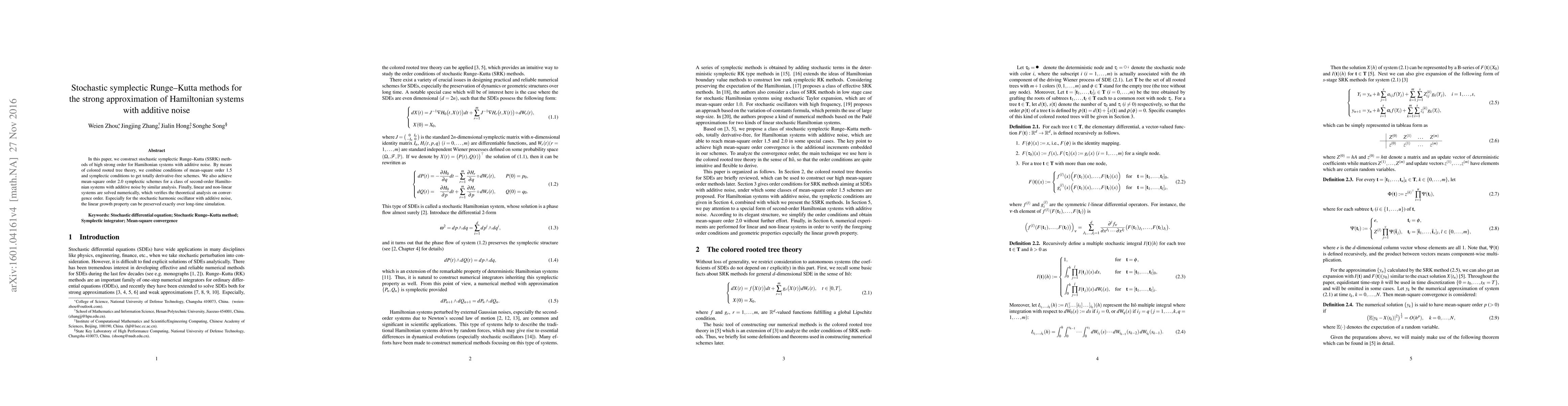 This paper develops stochastic symplectic Runge-Kutta methods (SSRK) for Hamiltonian systems with additive noise, achieving high strong order accuracy and mean-square orders of 1.5 and 2.0. Numerical verification demonstrates the preservation of linear growth properties in stochastic harmonic oscillator simulations.