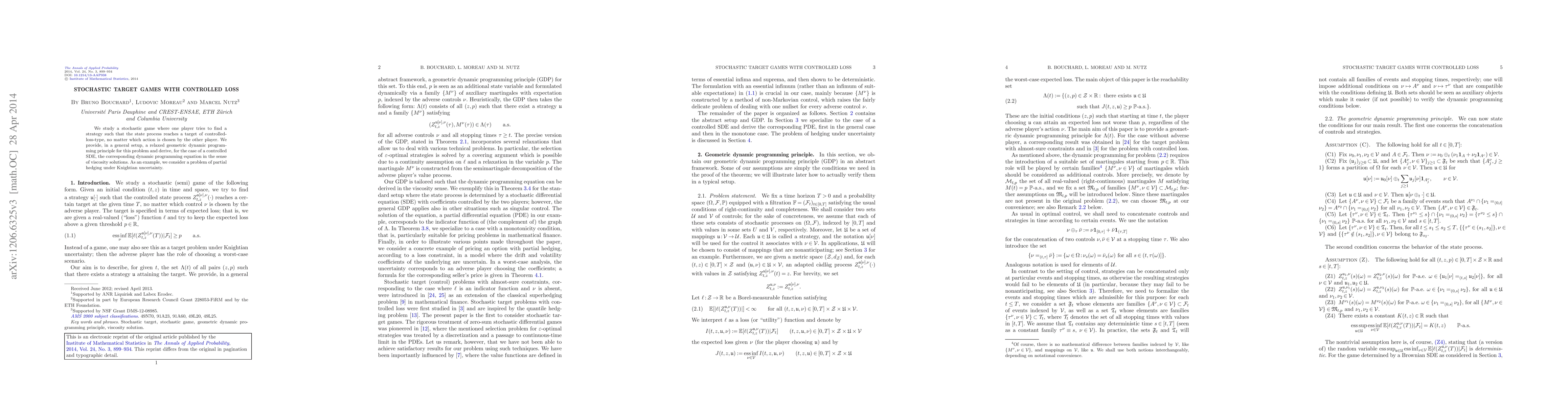 A stochastic target approach is used to solve PÃL matching problems with controlled loss.