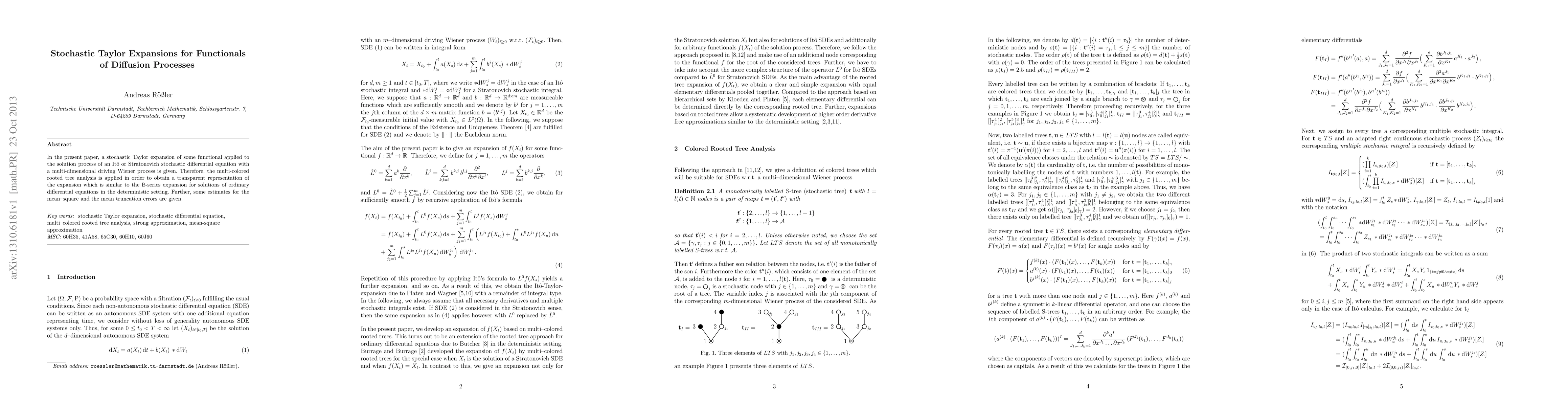 The combination of rooted tree analysis with stochastic Taylor expansions provides a novel solution to the approximation of expectations for diffusion processes