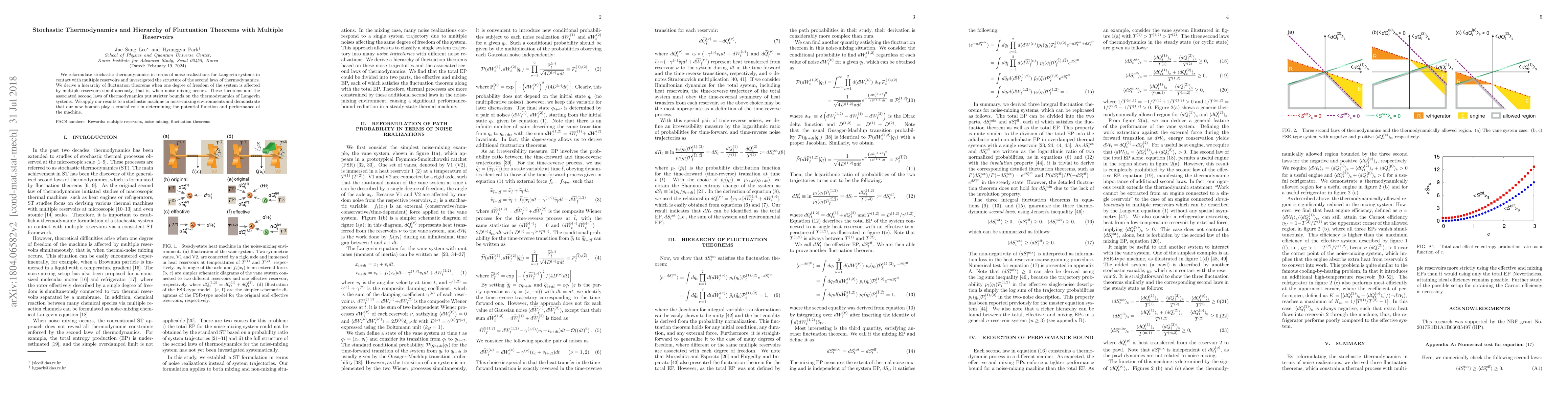 This paper reformulates stochastic thermodynamics for Langevin systems interacting with multiple reservoirs, deriving a hierarchy of fluctuation theorems for noise mixing scenarios. These theorems impose stricter thermodynamic bounds and are applied to stochastic machines, showing their importance in determining machine performance.