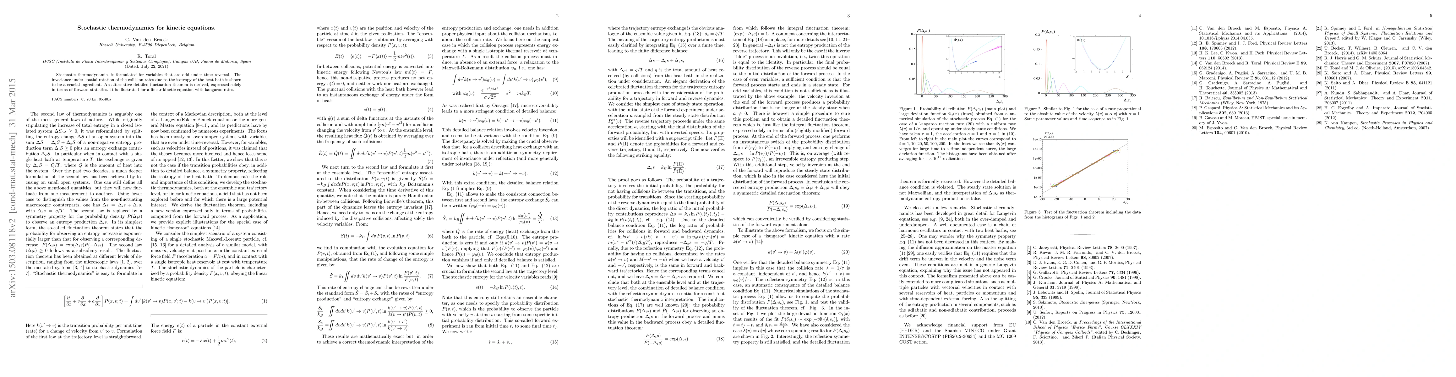 This paper formulates stochastic thermodynamics for time-odd variables and highlights the role of spatial rotation invariance in collision rates. It introduces an alternative detailed fluctuation theorem based solely on forward statistics, demonstrated through a linear kinetic equation with kangaroo rates.