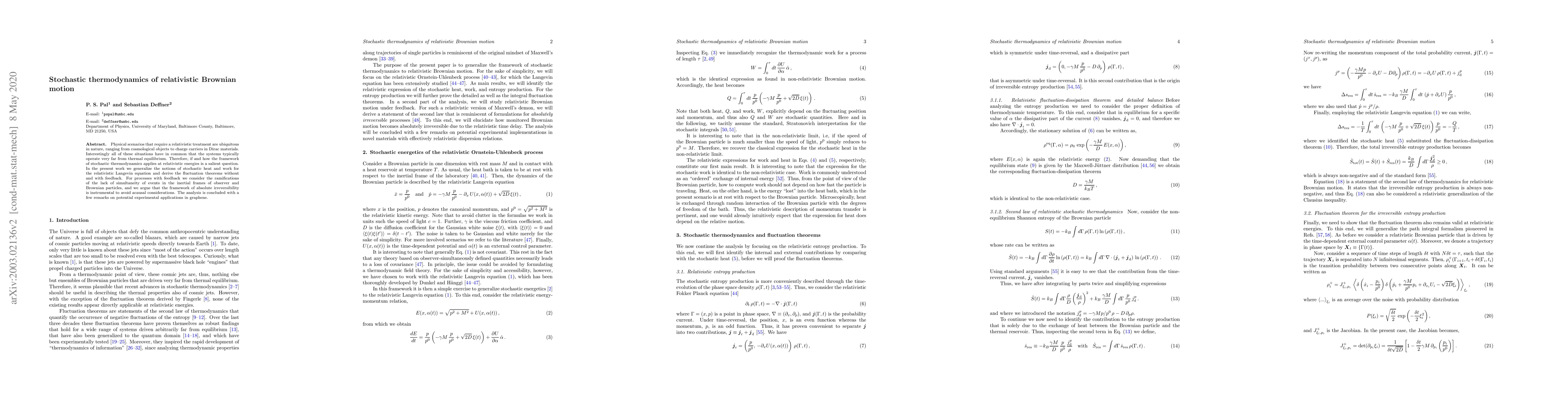 Researchers generalize stochastic thermodynamics to relativistic Brownian motion, deriving fluctuation theorems without and with feedback, and exploring potential experimental applications in graphene.
