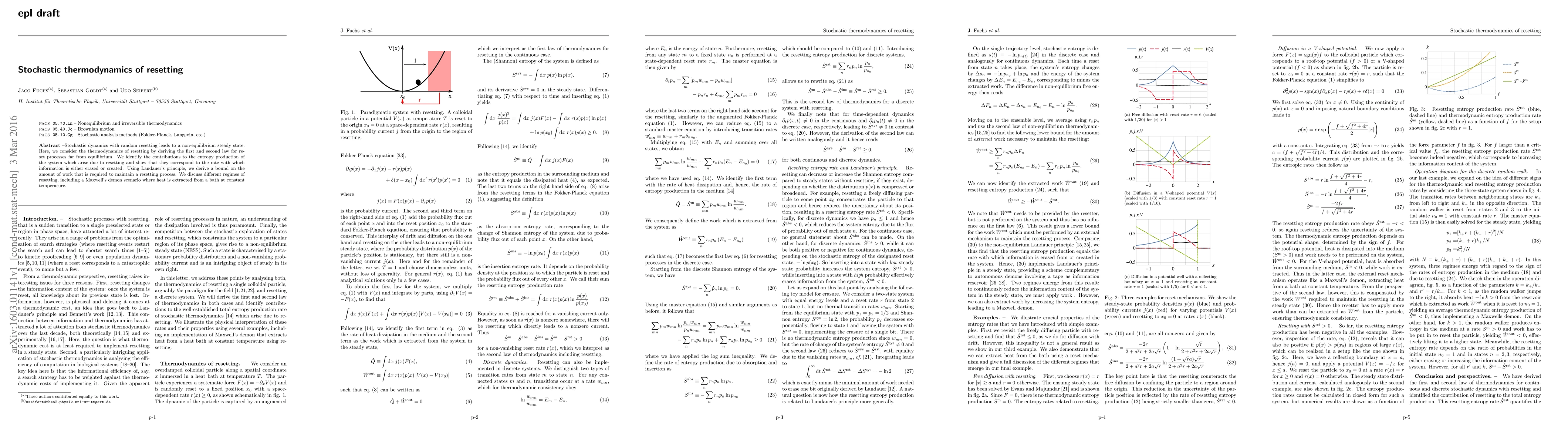 This paper explores the stochastic thermodynamics of resetting processes, deriving the first and second laws for non-equilibrium steady states. It identifies entropy contributions due to resetting and applies Landauer's principle to establish a work requirement bound for maintaining such processes, including scenarios akin to Maxwell's demon.