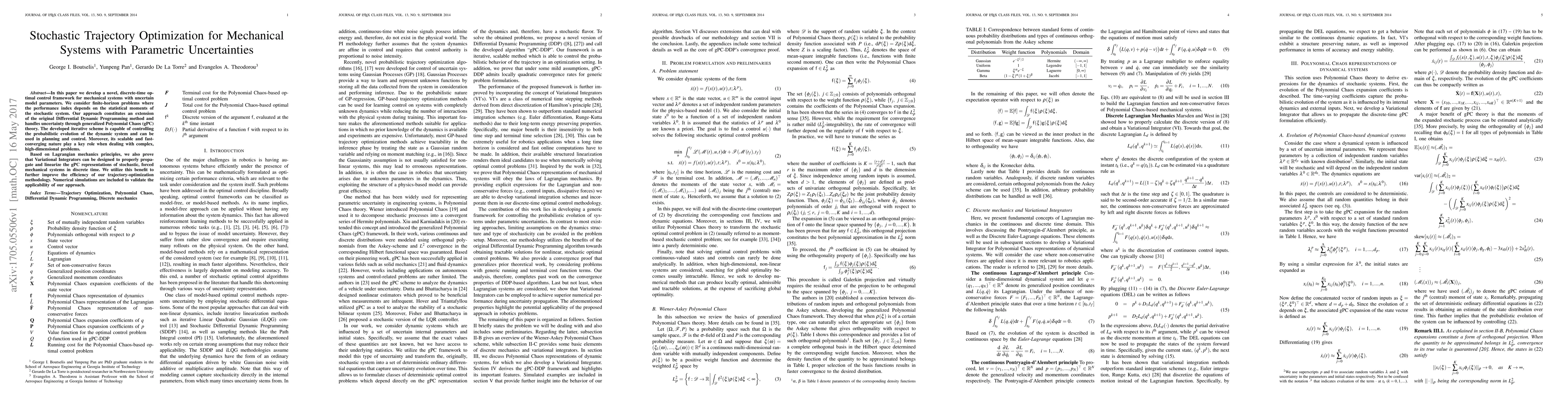 This paper presents a novel optimal control framework for mechanical systems with uncertain parameters, extending the Differential Dynamic Programming method using generalized Polynomial Chaos theory. The proposed iterative scheme efficiently handles probabilistic evolution and is scalable for high-dimensional problems, validated through numerical simulations.