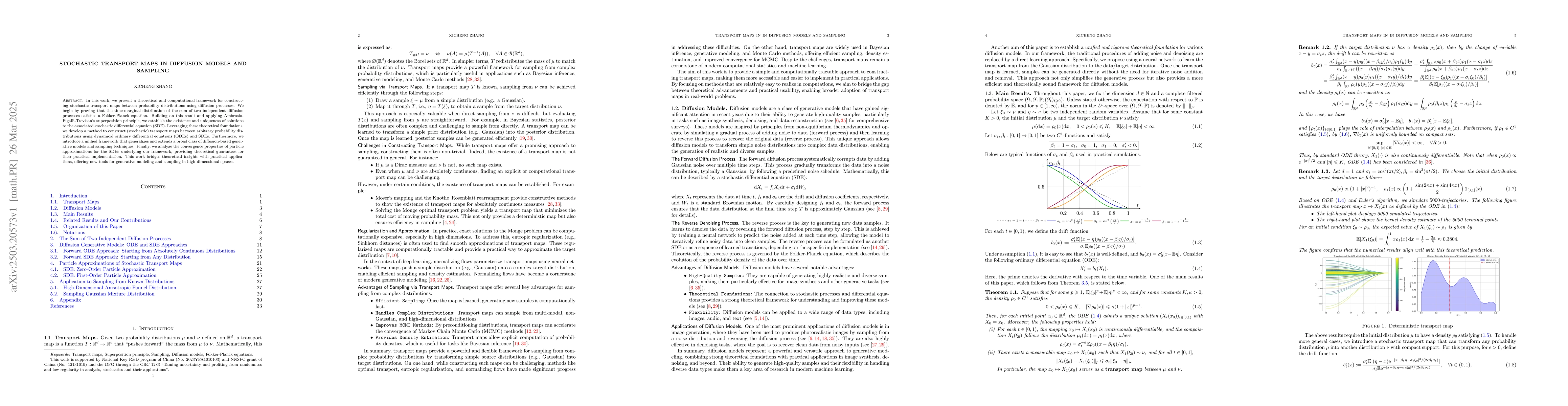 The paper presents a theoretical and computational framework for constructing stochastic transport maps between probability distributions using diffusion processes. It proves properties of the time-marginal distribution of the sum of two independent diffusion processes and establishes the existence and uniqueness of solutions to the associated stochastic differential equation (SDE).