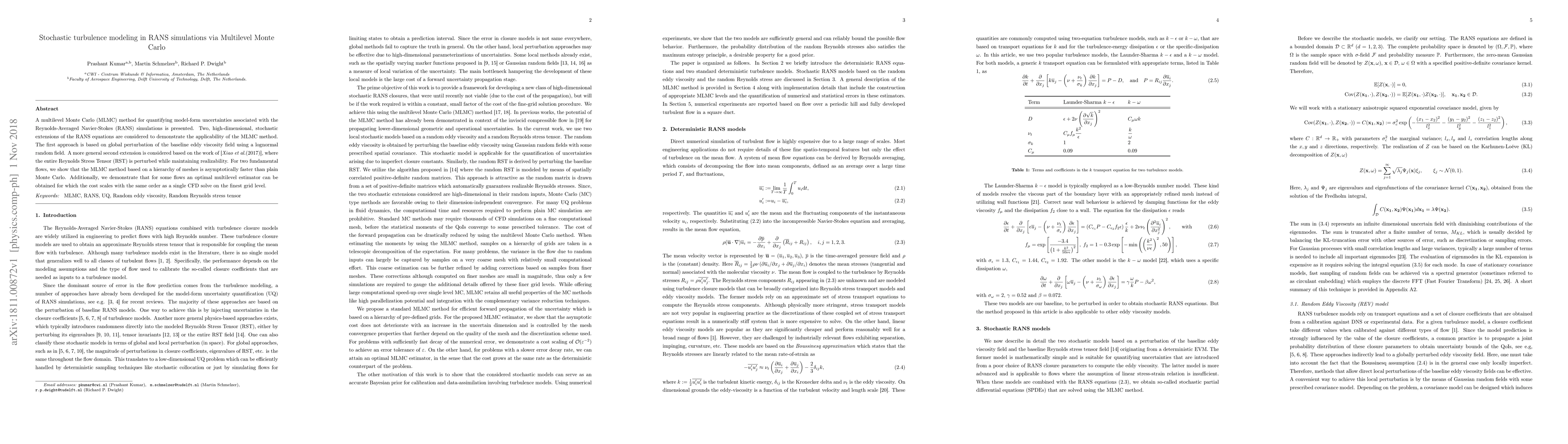 Researchers developed a method to quantify uncertainty in RANS simulations using multilevel Monte Carlo, showing it can be faster than traditional methods and achieve optimal scaling with the finest grid level.