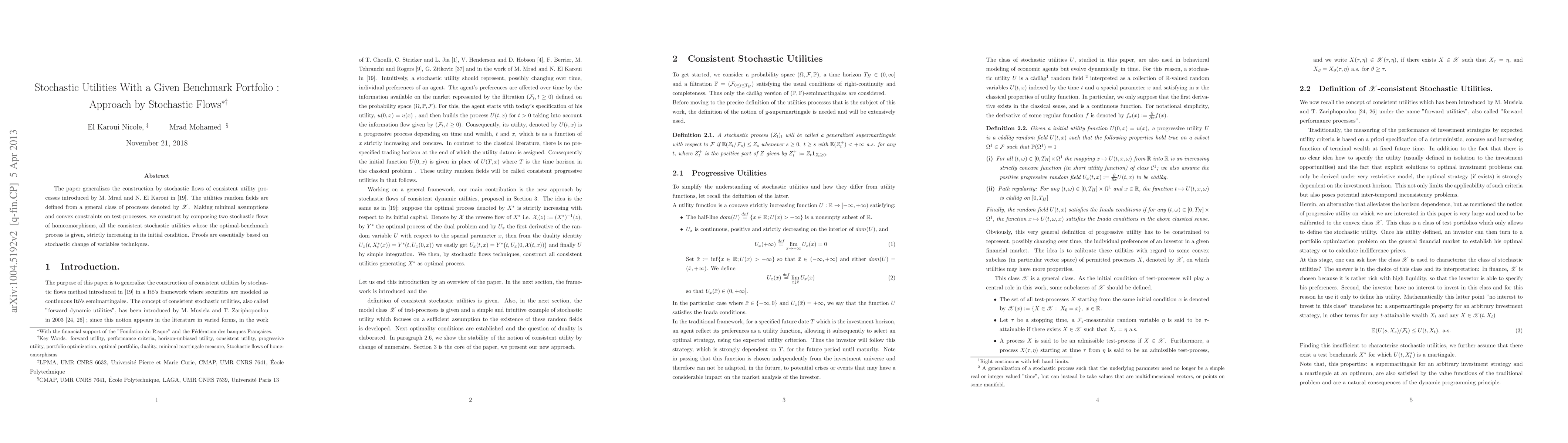 The paper generalizes the construction by stochastic flows of consistent utility processes introduced by M. Mrad and N. El Karoui in (2010). The utilities random fields are defined from a general class of processes denoted by $\GX$. Making minimal assumptions and convex constraints on test-processes, we construct by composing two stochastic flows of homeomorphisms, all the consistent stochastic utilities whose the optimal-benchmark process is given, strictly increasing in its initial condition. Proofs are essentially based on stochastic change of variables techniques.