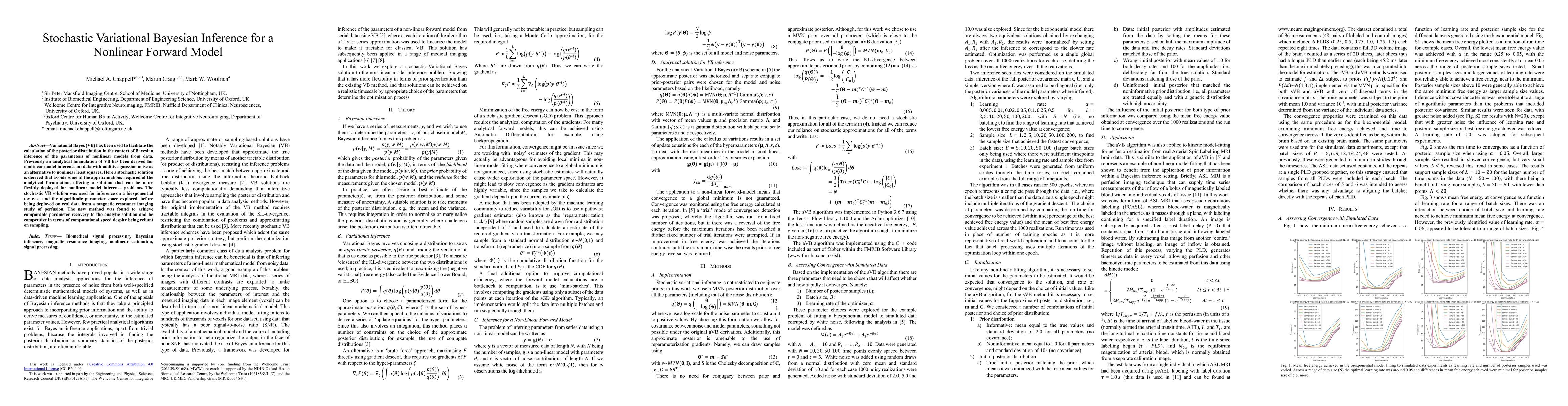 This paper proposes a stochastic variational Bayesian inference method for nonlinear forward models, offering a flexible alternative to analytical solutions. It demonstrates the method's effectiveness through a biexponential toy case and real MRI data, achieving comparable parameter recovery and computational efficiency.