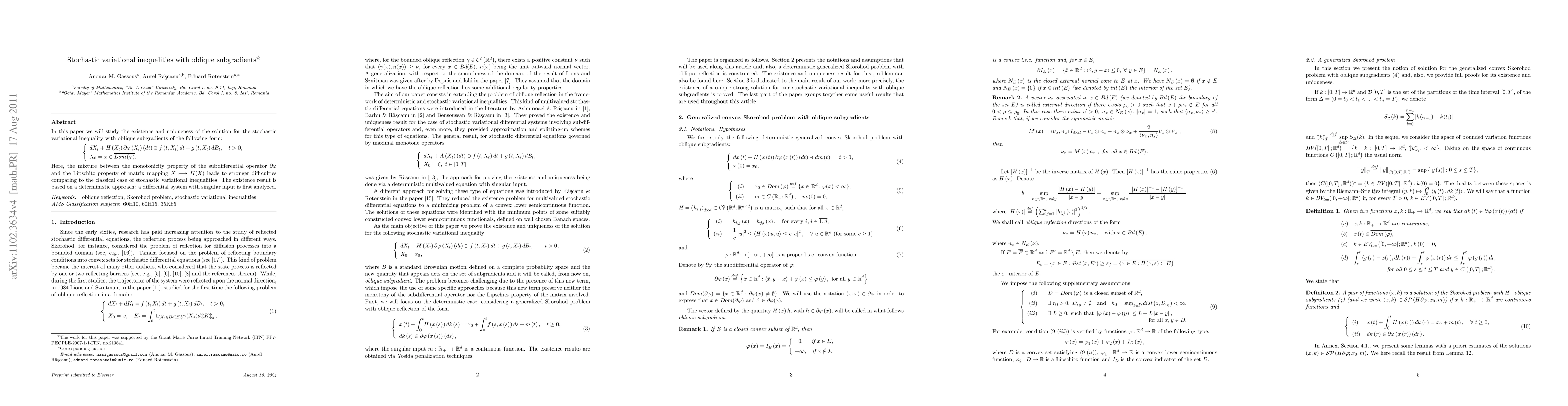 This paper investigates the existence and uniqueness of solutions for a stochastic variational inequality with oblique subgradients, generalizing a 1984 problem on stochastic differential equations with oblique reflection.