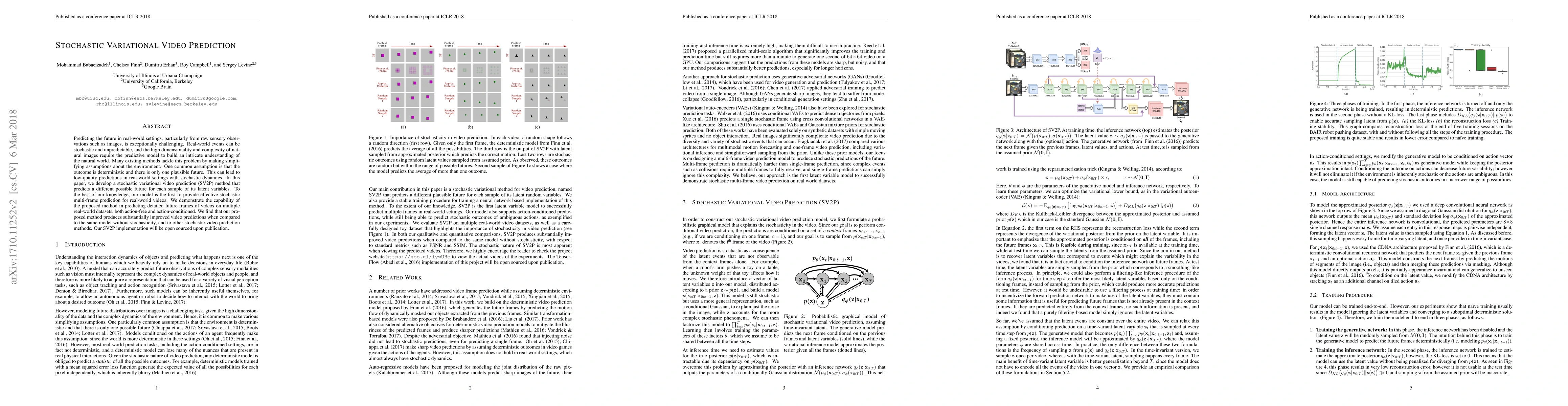 This paper introduces a stochastic variational video prediction (SV2P) method that generates multiple possible future frames for each latent variable sample, addressing the challenges of unpredictability in real-world videos. The proposed model significantly outperforms deterministic and other stochastic methods in predicting detailed future frames across various datasets.
