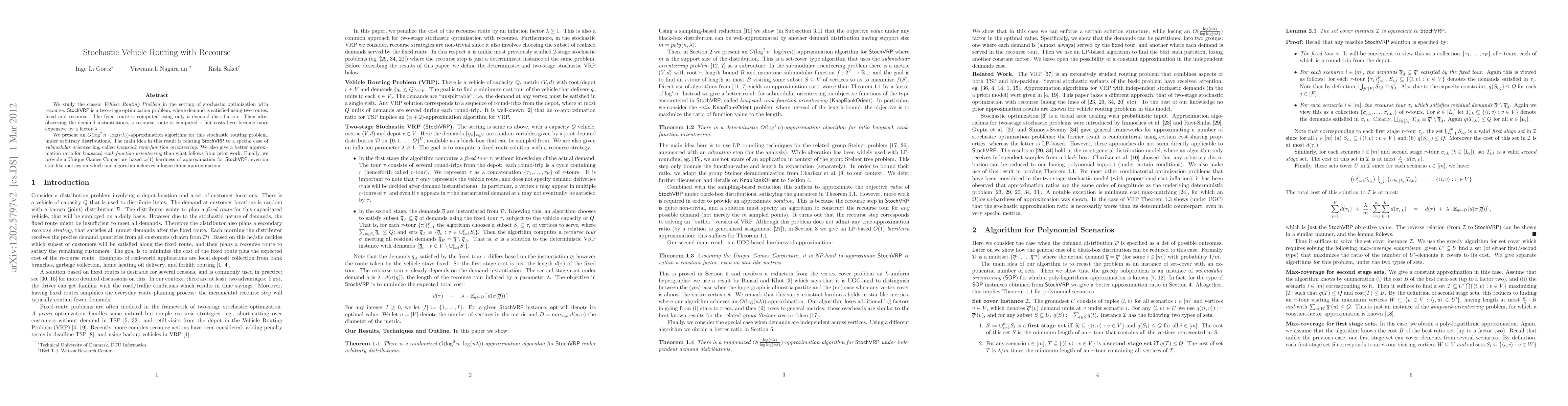 This paper presents an approximation algorithm for solving the Stochastic Vehicle Routing Problem (StochVRP) with recourse, achieving a logarithmic approximation ratio under arbitrary distributions. The solution leverages a connection to submodular orienteering problems, providing insights into the hardness of approximating StochVRP.