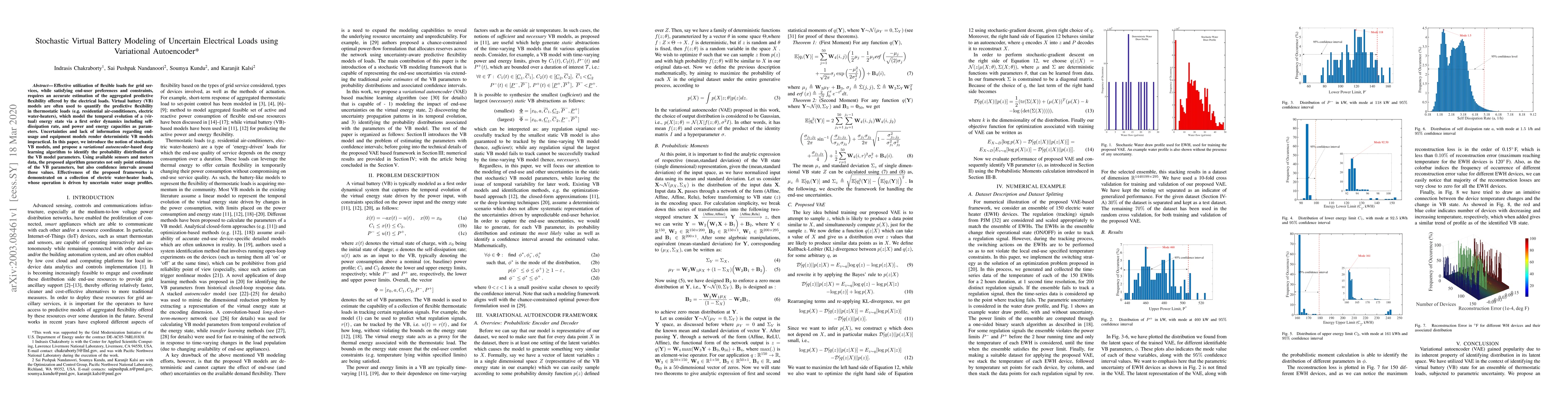 This paper introduces stochastic virtual battery models for estimating the predictive flexibility of uncertain electrical loads, like air-conditioners and water heaters. A deep learning algorithm using variational autoencoders is proposed to determine the probability distribution of model parameters, providing point estimates and confidence intervals based on sensor and meter data. The effectiveness of this framework is demonstrated using electric water-heater loads with uncertain usage patterns.