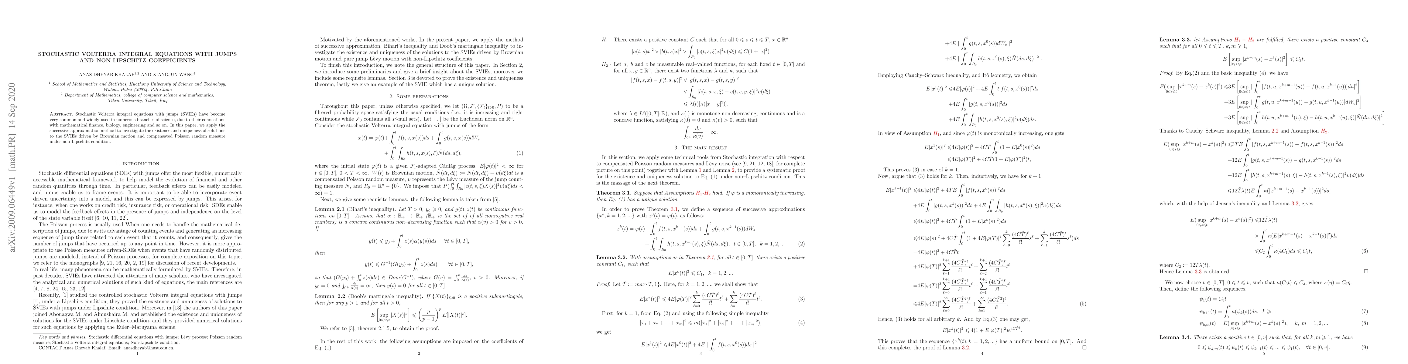 This paper explores the existence and uniqueness of solutions for stochastic Volterra integral equations with jumps (SVIEs) driven by Brownian motion and a compensated Poisson random measure, employing the successive approximation method under non-Lipschitz conditions. The study extends the applicability of SVIEs across various scientific fields.