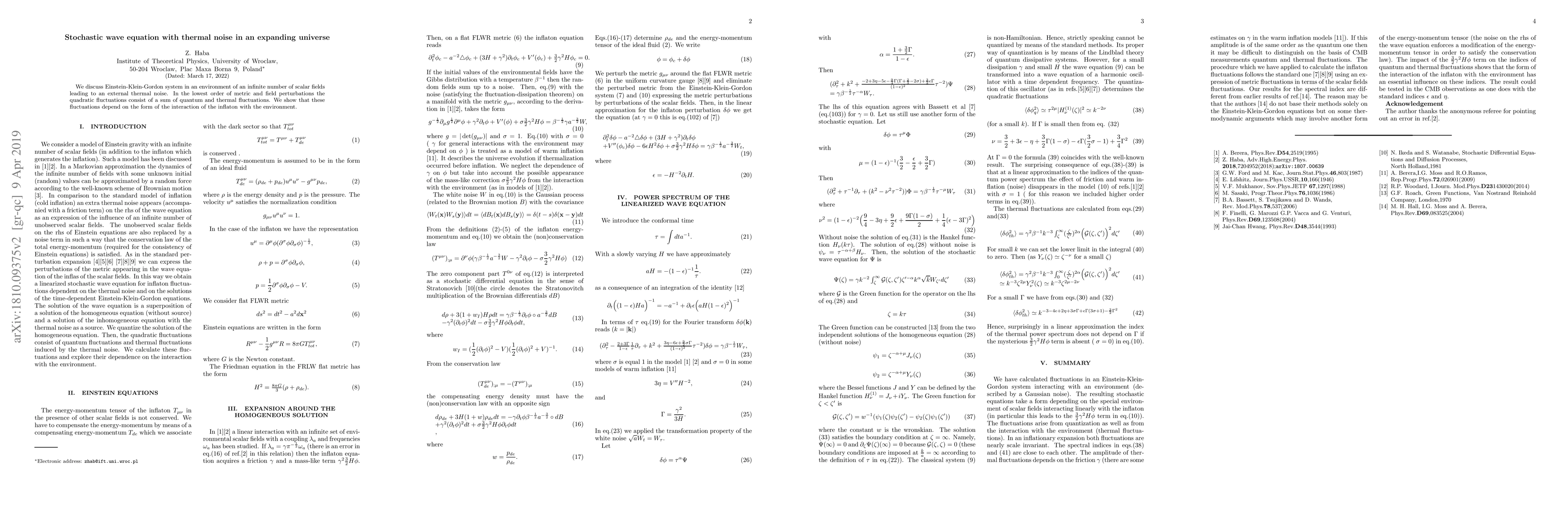 We discuss Einstein-Klein-Gordon system in an environment of an infinite number of scalar fields leading to an external thermal noise. In the lowest order of metric and field perturbations the quadratic fluctuations consist of a sum of quantum and thermal fluctuations. We show that these fluctuations depend on the form of the interaction of the inflaton with the environment.
