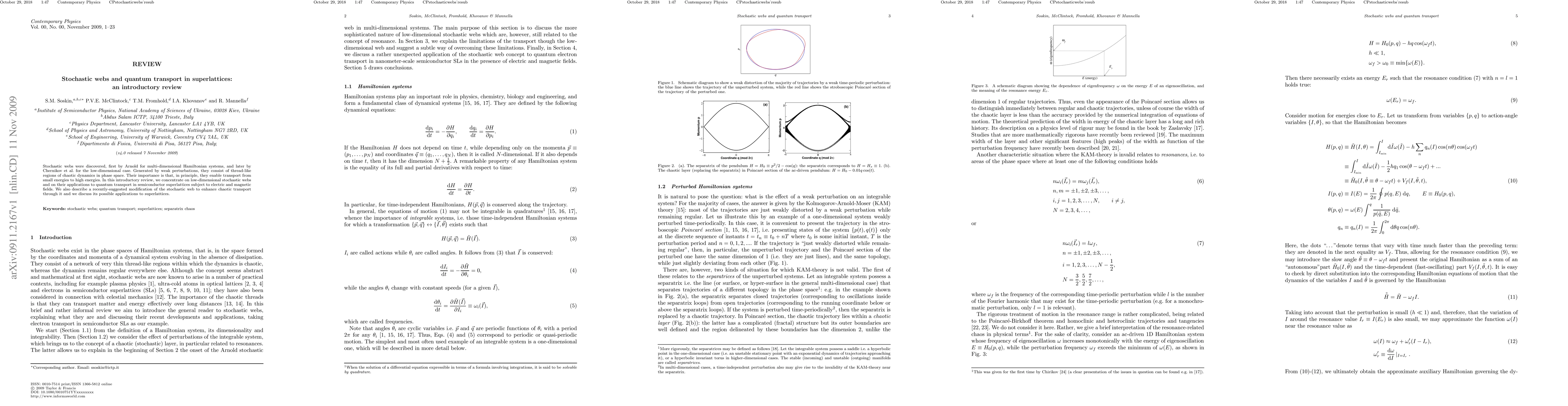 Stochastic webs were discovered, first by Arnold for multi-dimensional Hamiltonian systems, and later by Chernikov et al. for the low-dimensional case. Generated by weak perturbations, they consist of thread-like regions of chaotic dynamics in phase space. Their importance is that, in principle, they enable transport from small energies to high energies. In this introductory review, we concentrate on low-dimensional stochastic webs and on their applications to quantum transport in semiconductor superlattices subject to electric and magnetic fields. We also describe a recently-suggested modification of the stochastic web to enhance chaotic transport through it and we discuss its possible applications to superlattices. keywords: stochastic webs; quantum transport; superlattices; separatrix chaos