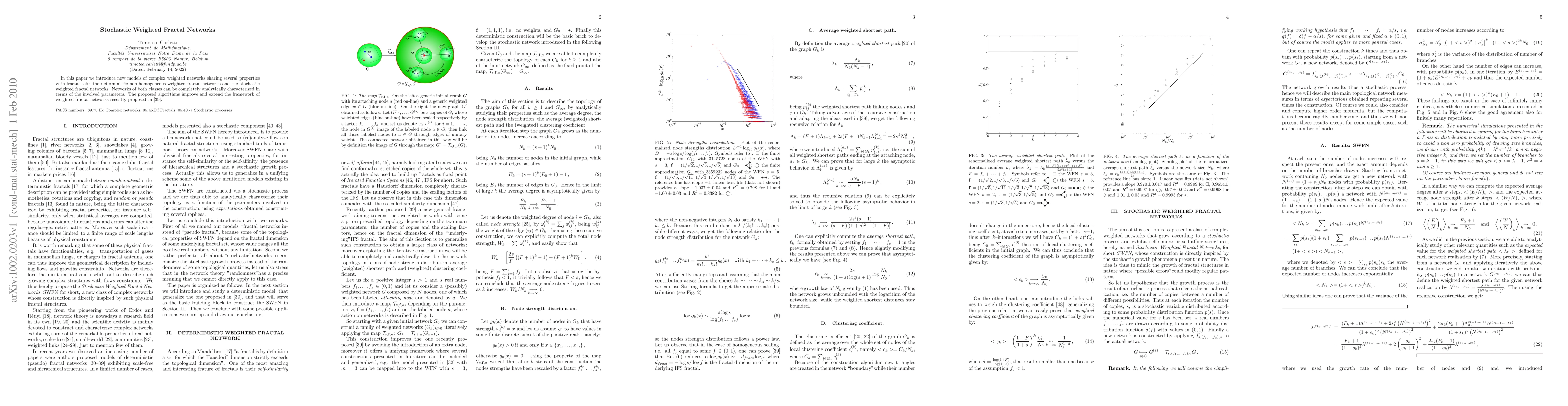 The paper presents a novel class of complex weighted networks, SWFN, that grow according to a stochastic process and exhibit self-similar or self-affine structures, extending the framework of weighted fractal networks.