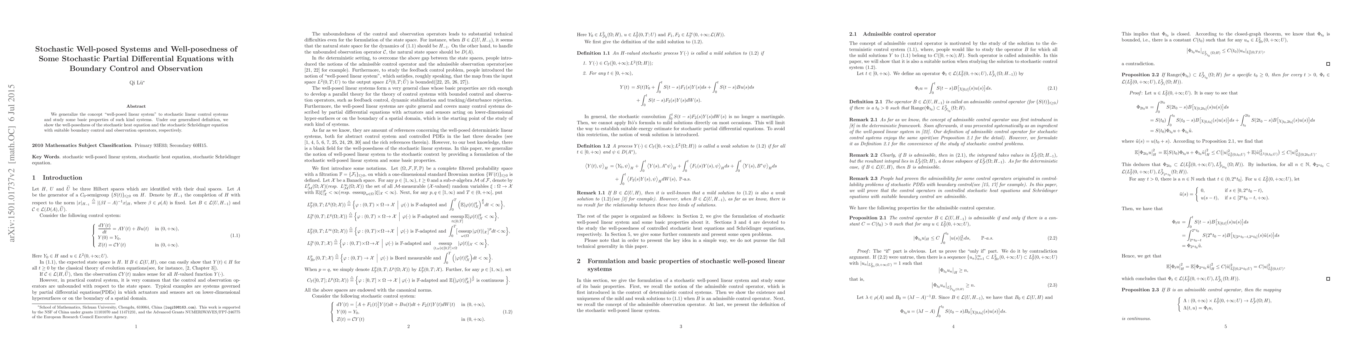 This research paper generalizes well-posedness of linear systems to stochastic linear control systems, proving it for the stochastic heat equation and Schrödinger equation with suitable boundary control and observation operators.