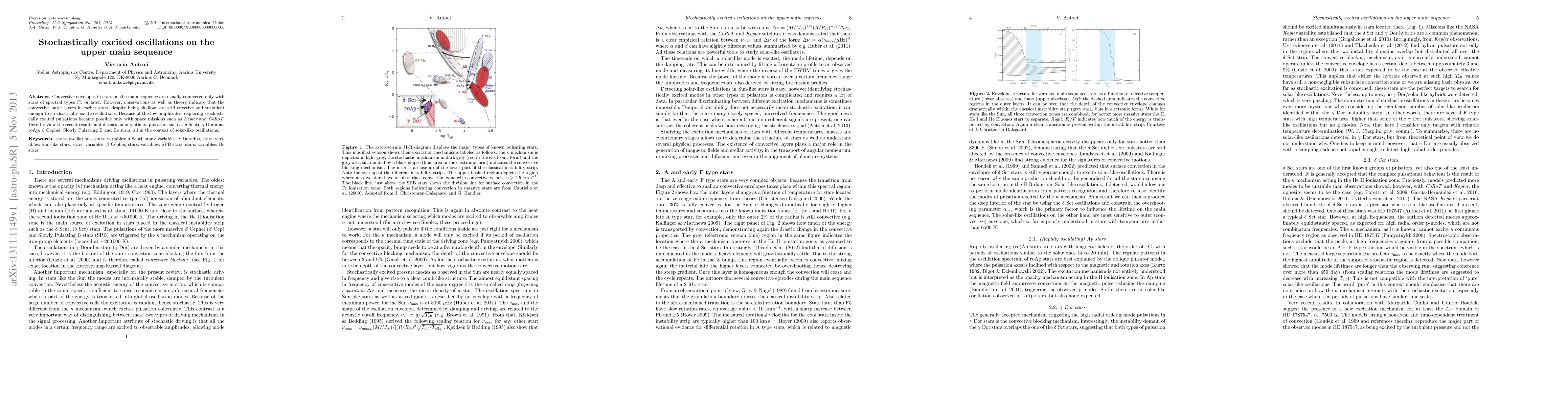 Research investigates stochastically excited oscillations in stars on the main sequence, including those of earlier spectral types, using data from space missions like Kepler and CoRoT.