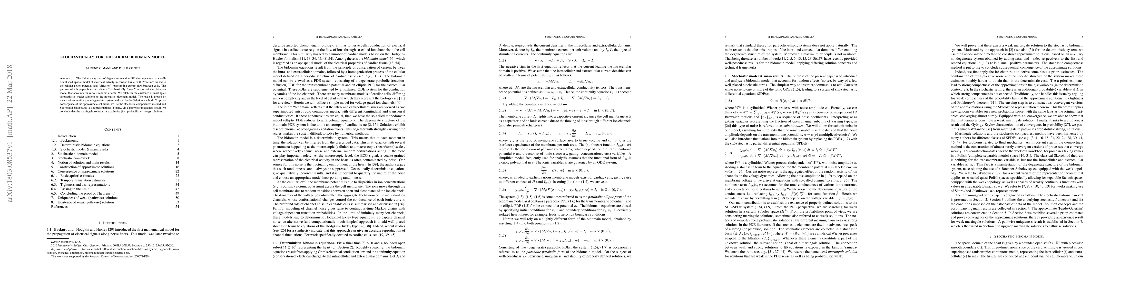 A new model of cardiac electrical activity is proposed that incorporates random effects, allowing for a more realistic simulation of the complex interactions within the heart. The study establishes the existence and convergence of solutions to this stochastic model.