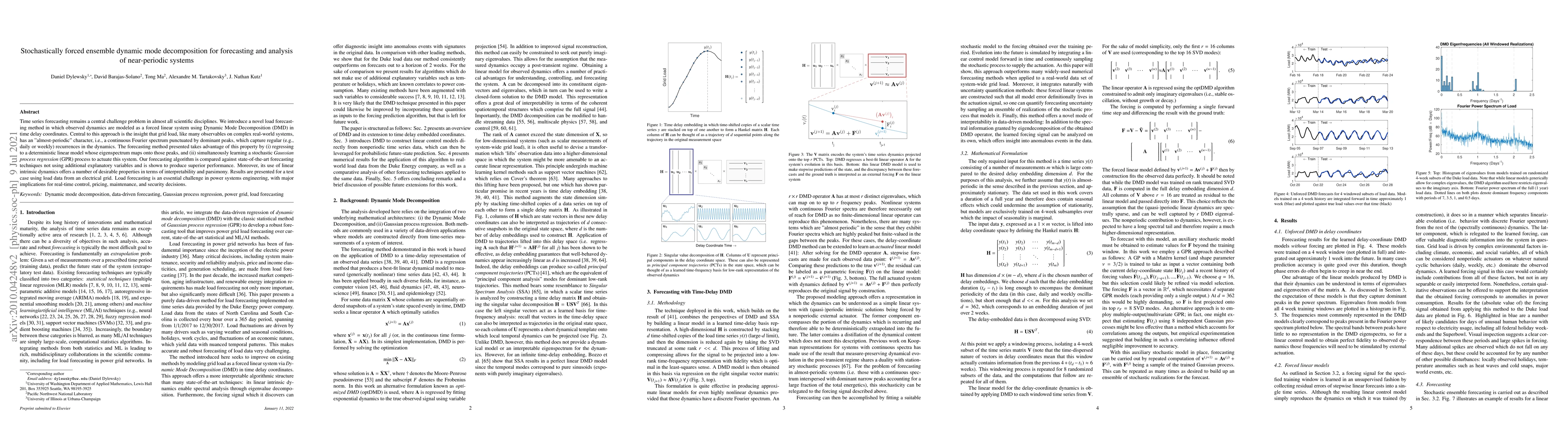 Time series forecasting remains a central challenge problem in almost all scientific disciplines. We introduce a novel load forecasting method in which observed dynamics are modeled as a forced linear system using Dynamic Mode Decomposition (DMD) in time delay coordinates. Central to this approach is the insight that grid load, like many observables on complex real-world systems, has an "almost-periodic" character, i.e., a continuous Fourier spectrum punctuated by dominant peaks, which capture regular (e.g., daily or weekly) recurrences in the dynamics. The forecasting method presented takes advantage of this property by (i) regressing to a deterministic linear model whose eigenspectrum maps onto those peaks, and (ii) simultaneously learning a stochastic Gaussian process regression (GPR) process to actuate this system. Our forecasting algorithm is compared against state-of-the-art forecasting techniques not using additional explanatory variables and is shown to produce superior performance. Moreover, its use of linear intrinsic dynamics offers a number of desirable properties in terms of interpretability and parsimony. Results are presented for a test case using load data from an electrical grid. Load forecasting is an essential challenge in power systems engineering, with major implications for real-time control, pricing, maintenance, and security decisions.