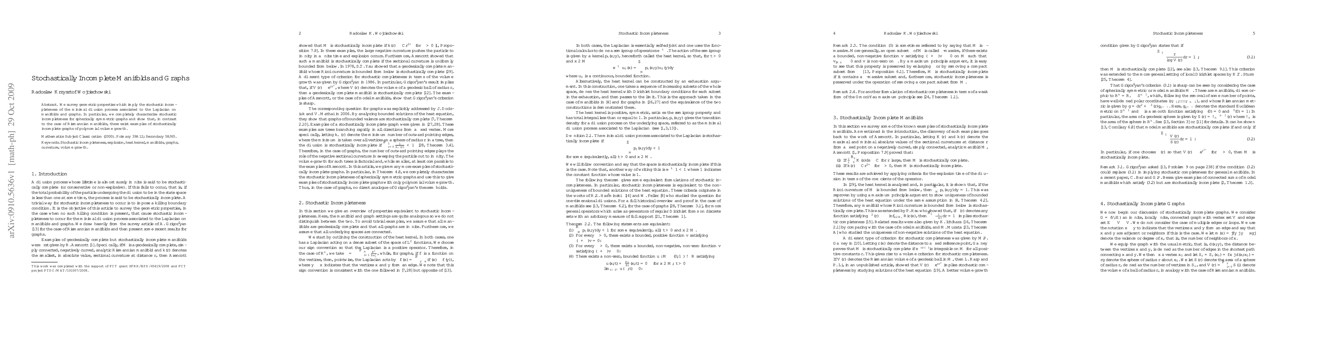 This paper examines geometric conditions that lead to stochastic incompleteness in diffusion processes on manifolds and graphs. It characterizes such properties for spherically symmetric graphs and reveals the existence of stochastically incomplete graphs with polynomial volume growth, differing from Riemannian manifolds.