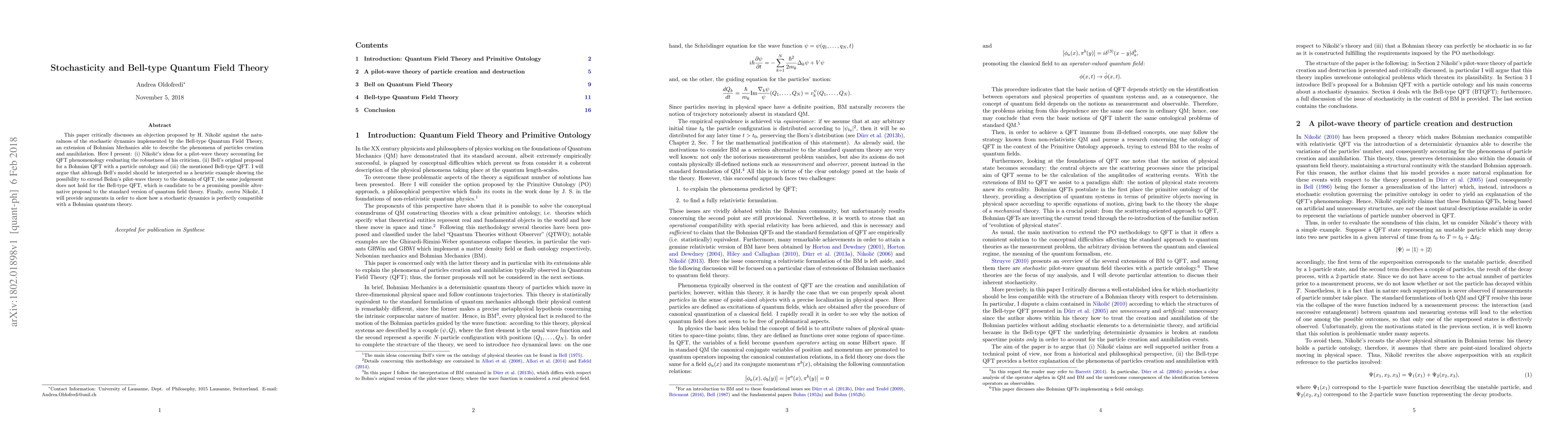 This paper critically discusses an objection proposed by H. Nikolic against the naturalness of the stochastic dynamics implemented by the Bell-type Quantum Field Theory, an extension of Bohmian Mechanics able to describe the phenomena of particles creation and annihilation. Here I present: (i) Nikolic's ideas for a pilot-wave theory accounting for QFT phenomenology evaluating the robustness of his criticism, (ii) Bell's original proposal for a Bohmian QFT with a particle ontology and (iii) the mentioned Bell-type QFT. I will argue that although Bell's model should be interpreted as a heuristic example showing the possibility to extend Bohm's pilot- wave theory to the domain of QFT, the same judgement does not hold for the Bell-type QFT, which is candidate to be a promising possible alternative proposal to the standard version of quantum field theory. Finally, contra Nikolic, I will provide arguments in order to show how a stochastic dynamics is perfectly compatible with a Bohmian quantum theory.