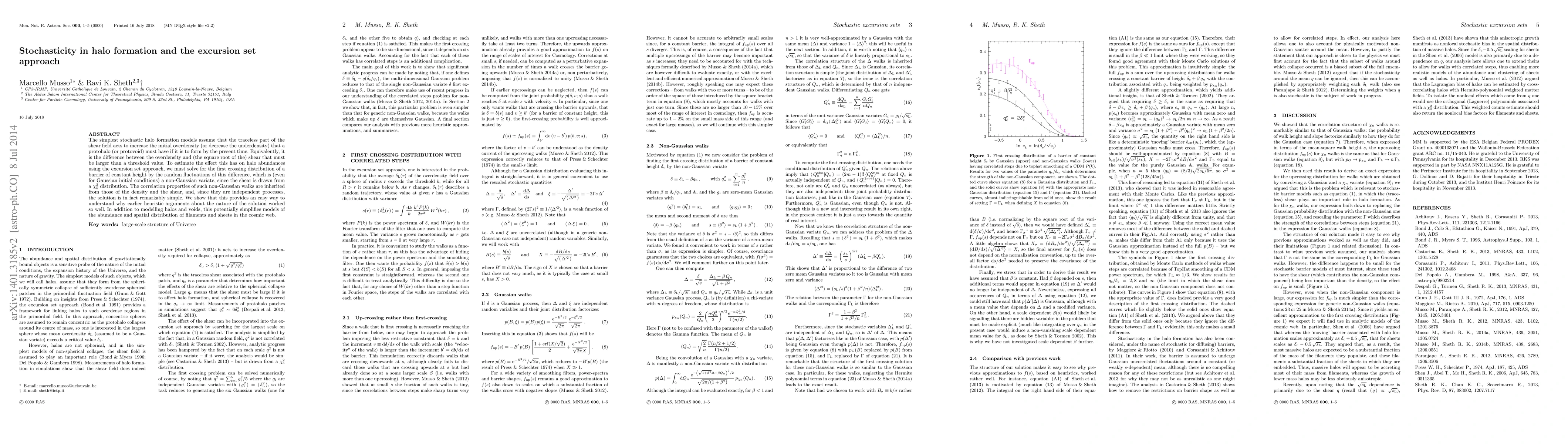 This paper explores the stochastic nature of halo formation using the excursion set approach, demonstrating that the non-Gaussian random walks of overdensity differences lead to a simple solution for the first crossing distribution. This method provides a clear understanding of earlier heuristic models and may simplify the study of cosmic web structures like filaments and sheets.