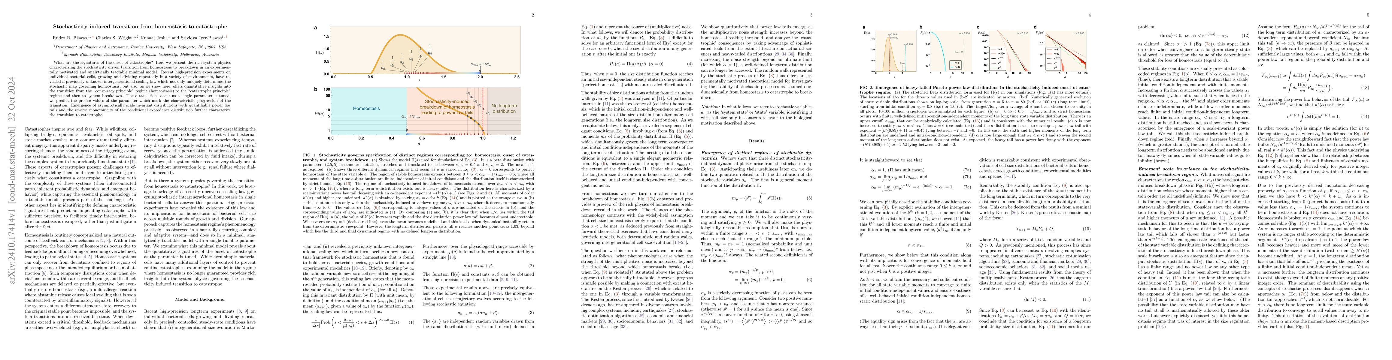 The research presents a fresh perspective on the transition from homeostasis to catastrophe, highlighting the role of stochasticity and scale invariance, which distinguishes it from previous studies focusing on deterministic transitions.