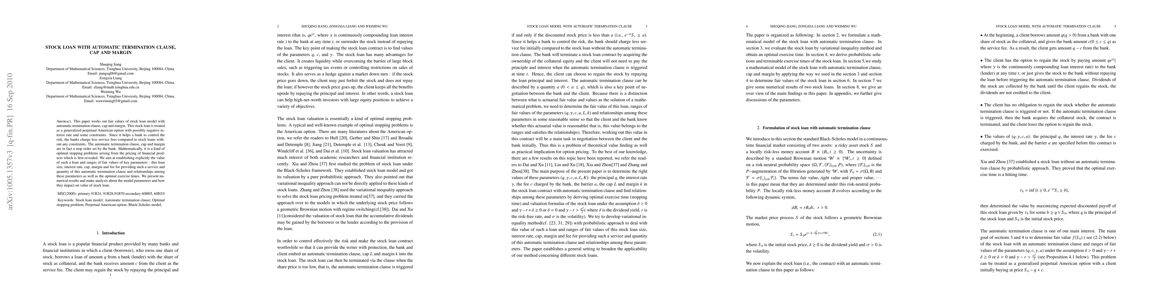 This paper develops a model to calculate the fair value of stock loans with automatic termination clauses, caps, and margins, aiming to optimize risk control for banks and reduce service fees.
