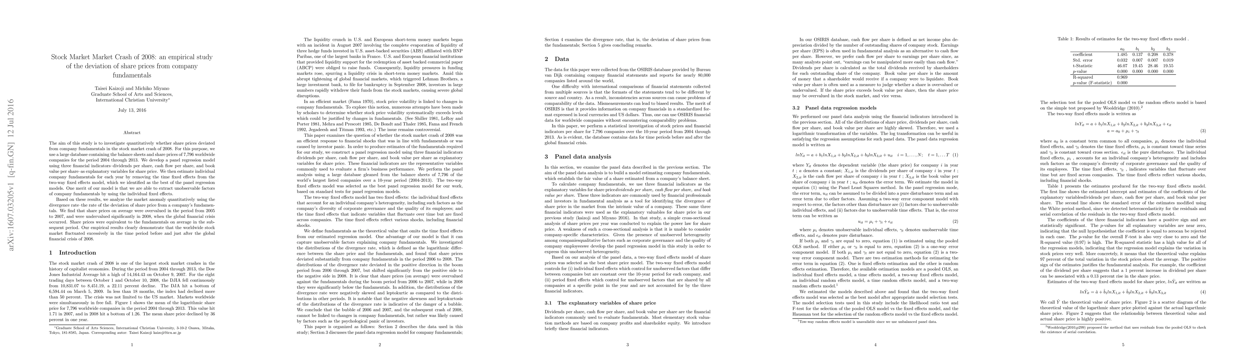 This study analyzed share prices vs company fundamentals from 2004-2013, finding that prices were overvalued before the 2008 crisis and undervalued during it, suggesting excessive market fluctuations.