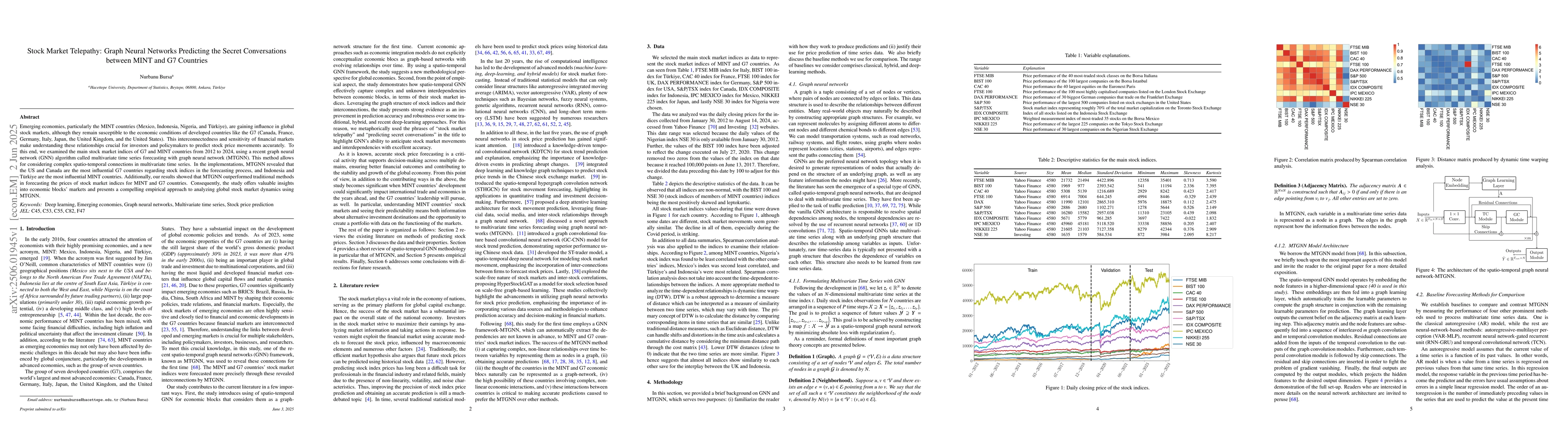 This work distinguishes itself by employing the MTGNN method to uncover complex spatio-temporal connections in stock market indices of both developed (G7) and emerging (MINT) economies, outperforming traditional forecasting methods.